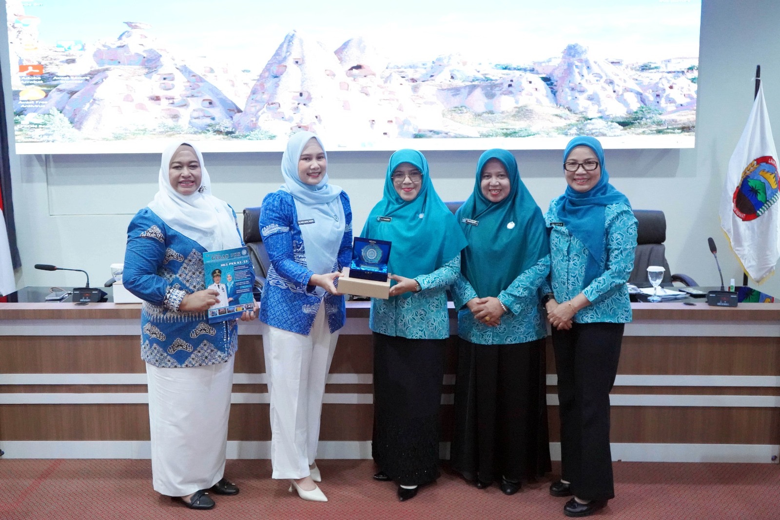 Rombongan TP PKK Muara Enim yang dipimpin Ketua TP PKK, Heni Pertiwi Edison, disambut langsung Wakil Ketua TP PKK Lampung Selatan, Reni Apriyani, bersama Ketua DWP Lampung Selatan Ratna Yanuana Supriyanto, beserta jajaran pengurus TP PKK Lampung Selatan di Aula Krakatau, Kantor Bupati Lampung Selatan.