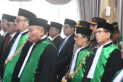 Prosesi purna bhakti tersebut dipimpin langsung Ketua Mahkamah Agung RI Sunarto dan dihadiri jajaran pimpinan lembaga peradilan, unsur Forum Koordinasi Pimpinan Daerah (Forkopimda), pejabat instansi vertikal, serta para tamu undangan lainnya.